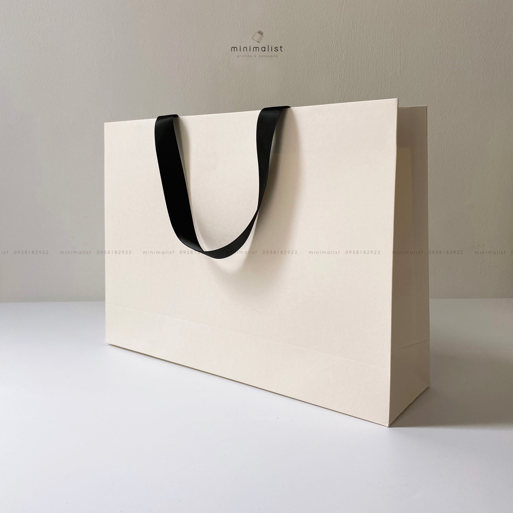 Set of 50 White Kraft Paper Bags (38x28x10cm) – Handcrafted Satin Ribbon Handles