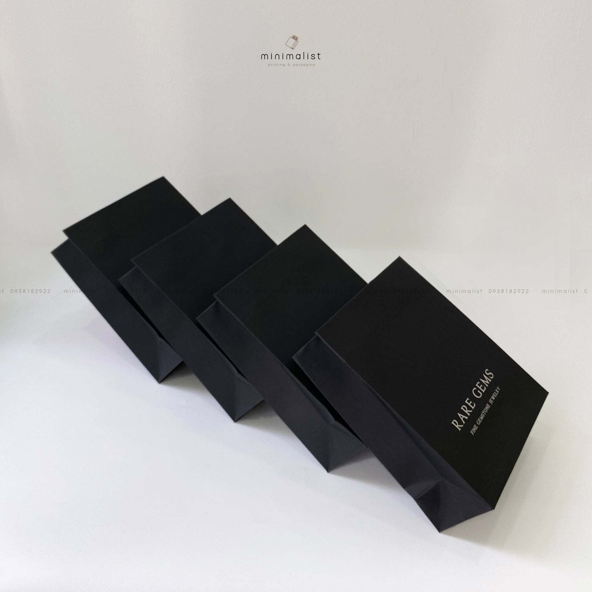 - Hot foil stamping on both sides of the bag, using the same design and color.