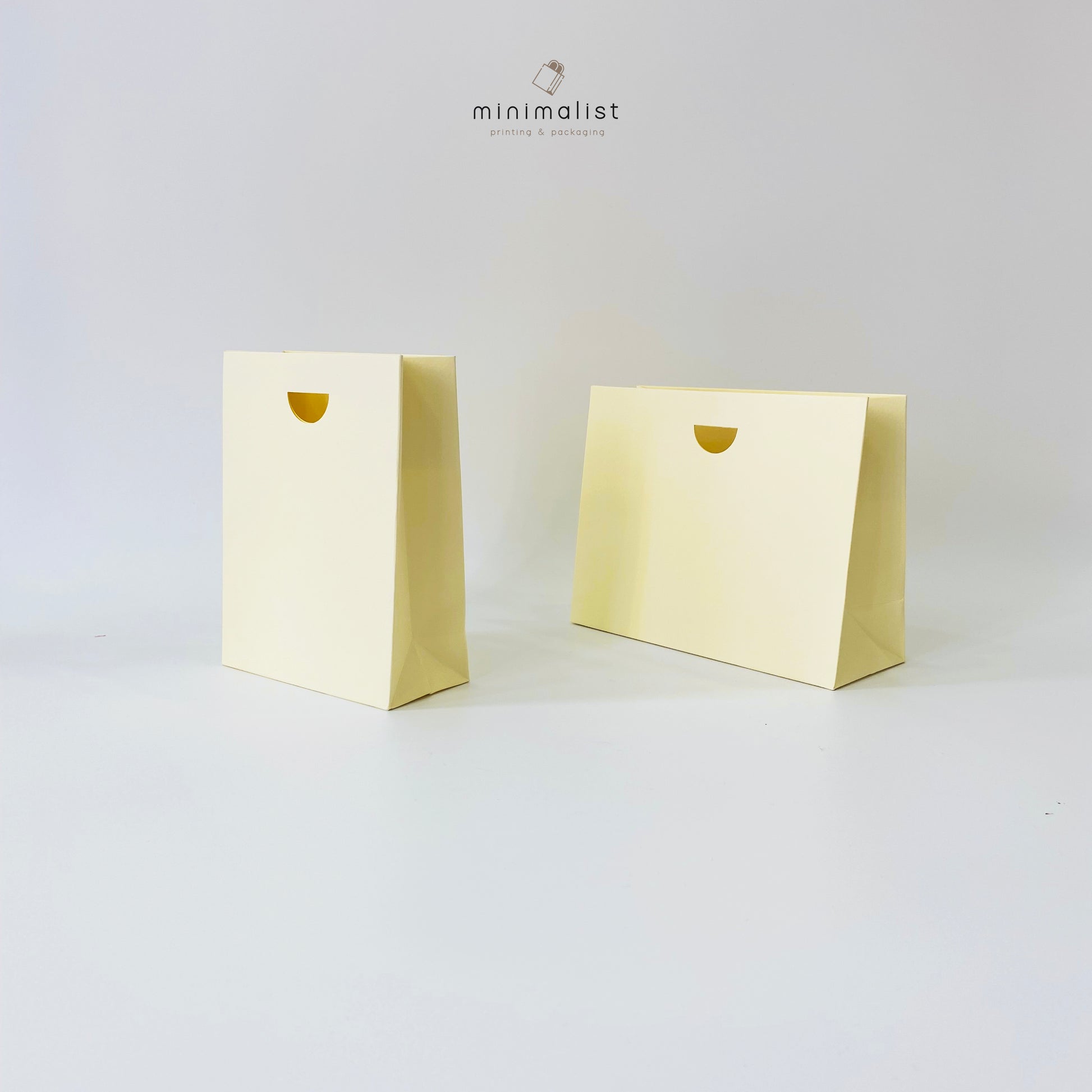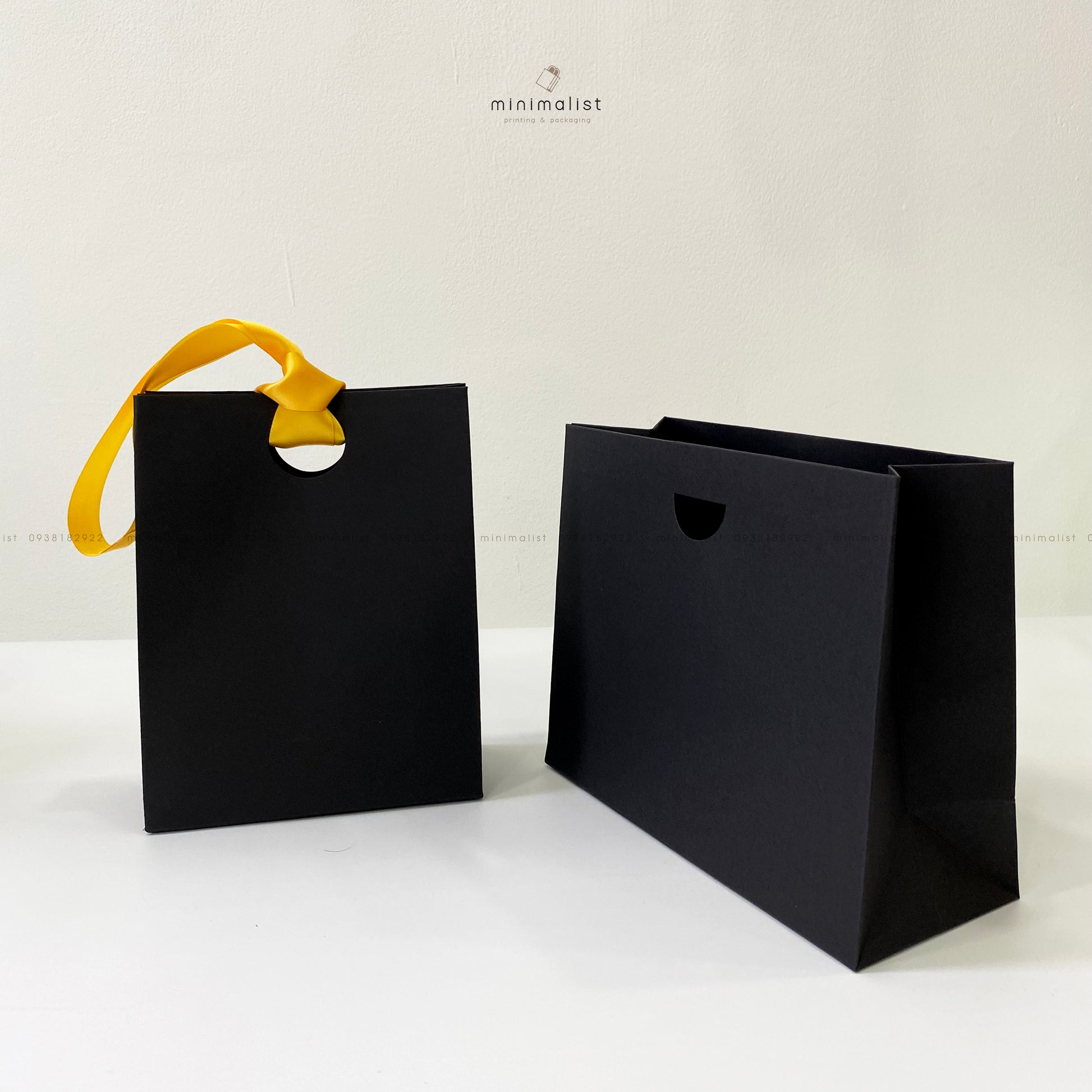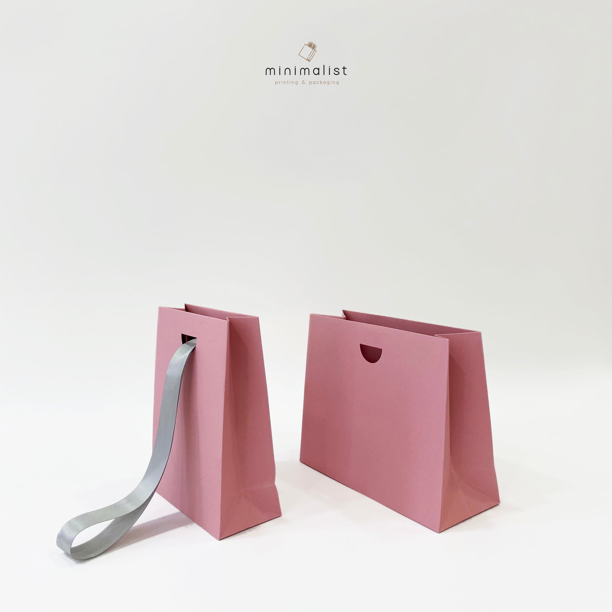 The Minimalist Paper Bag features a pre-punched handle hole, allowing you to carry it without a ribbon if preferred. You can customize the look by tying a bow or a tie knot with the included satin ribbon. Additionally, Minimalist offers a separate ribbon selection, giving you the freedom to mix & match to your unique style.