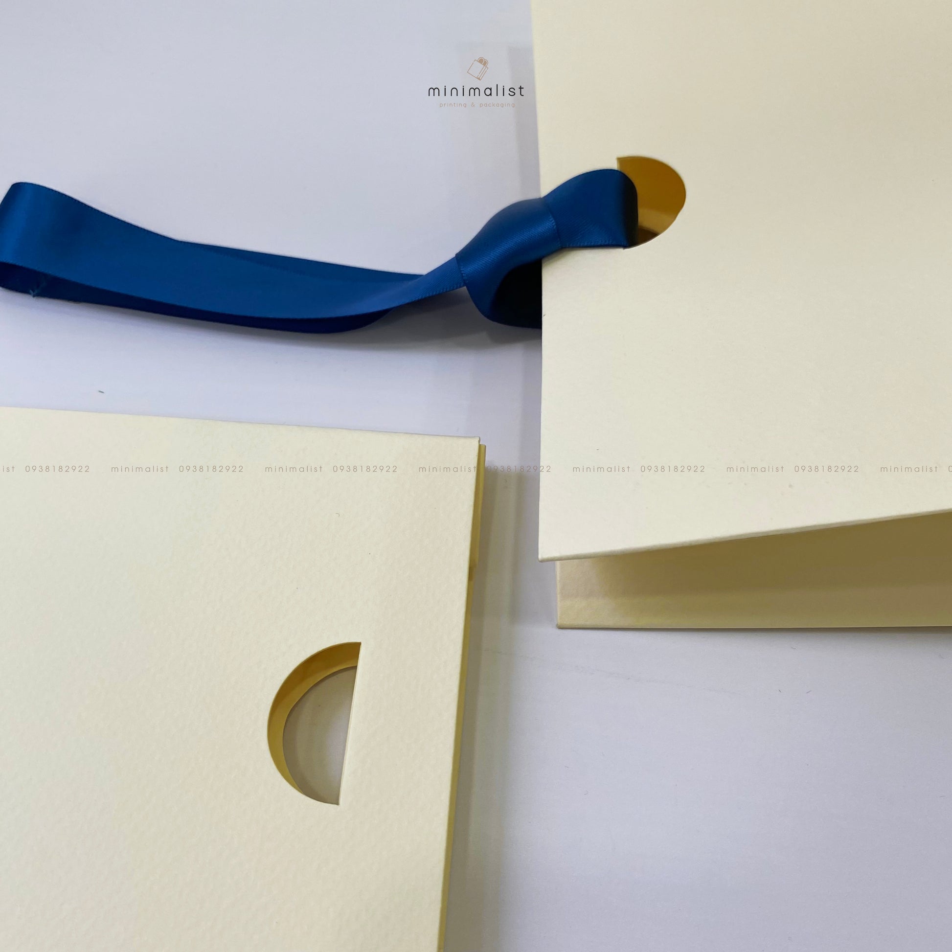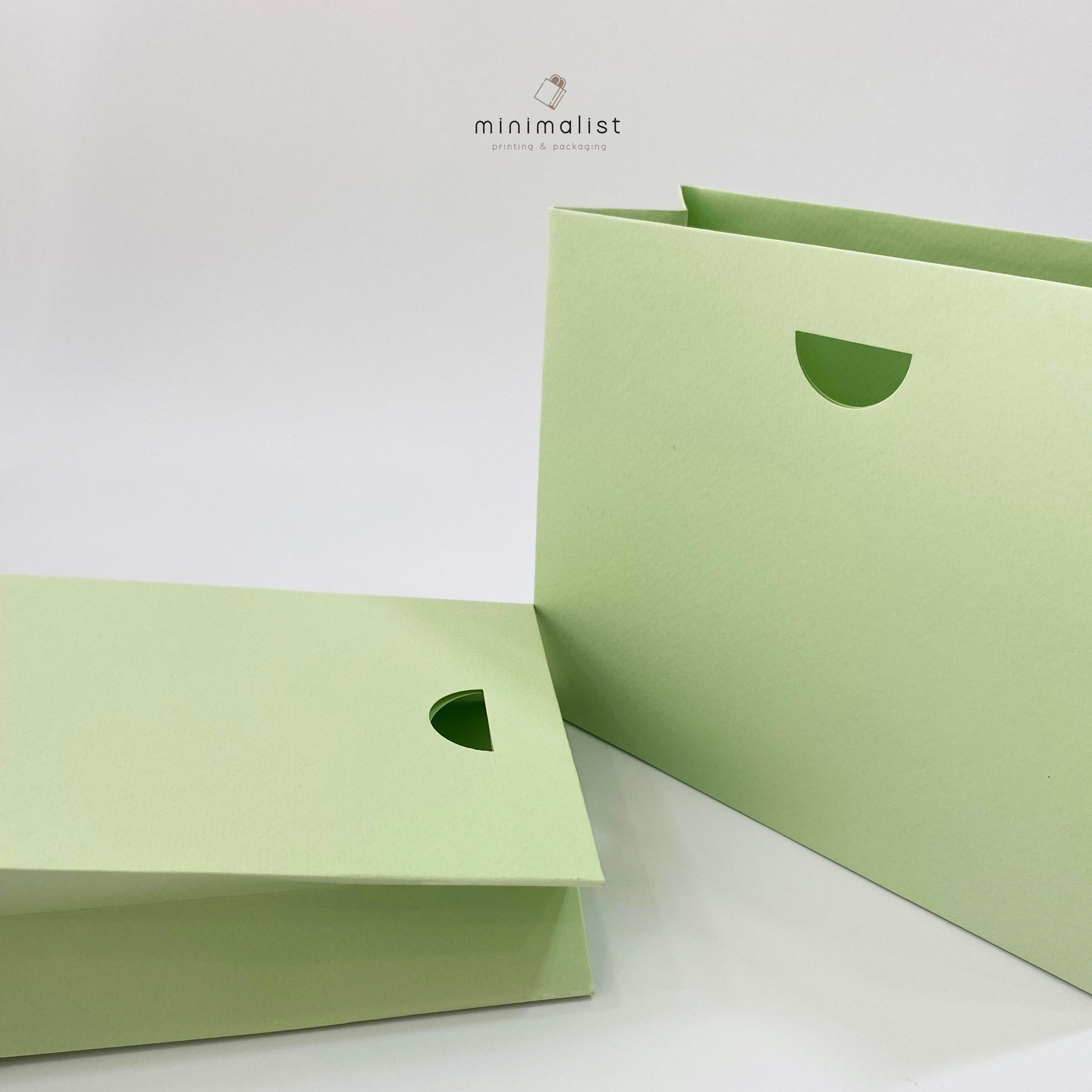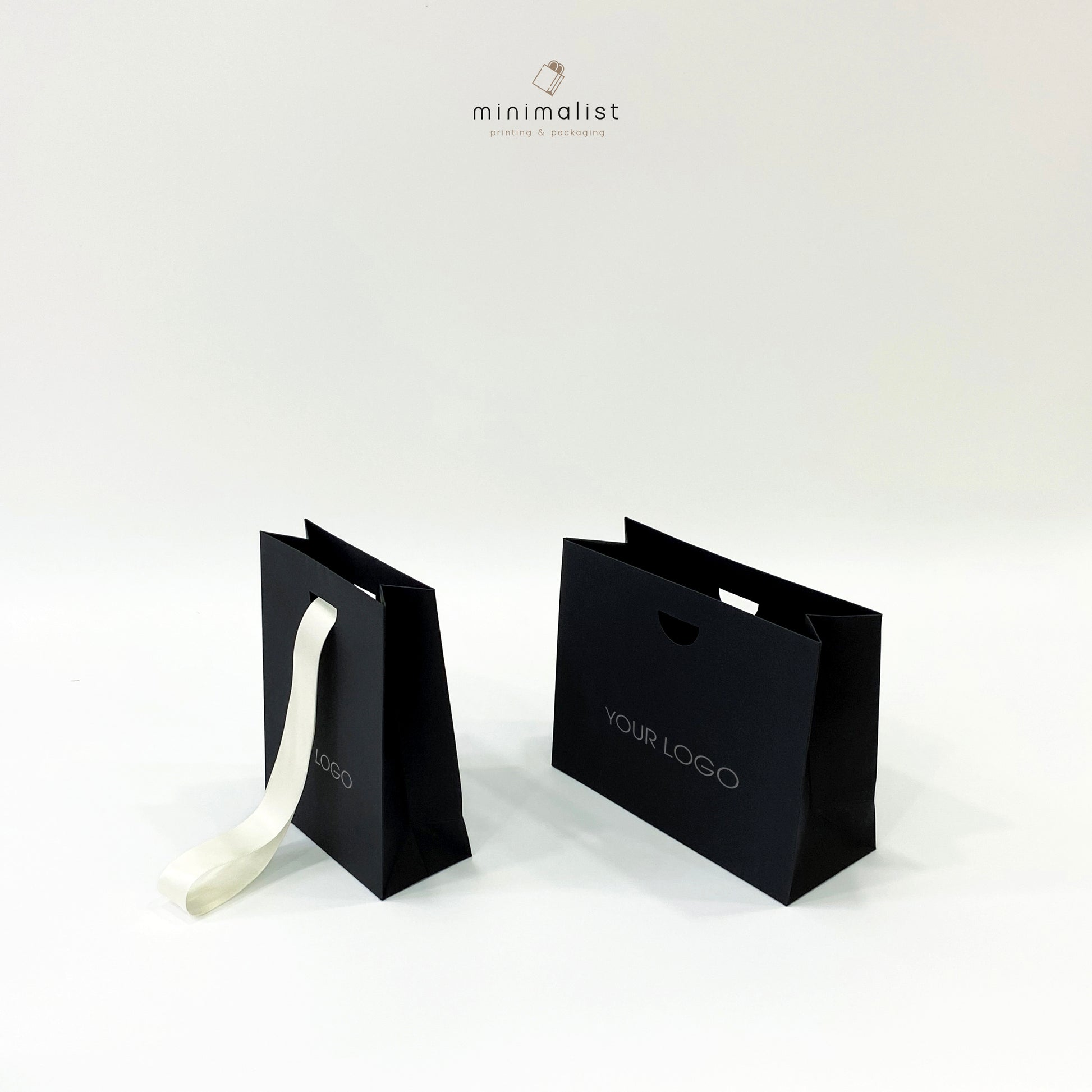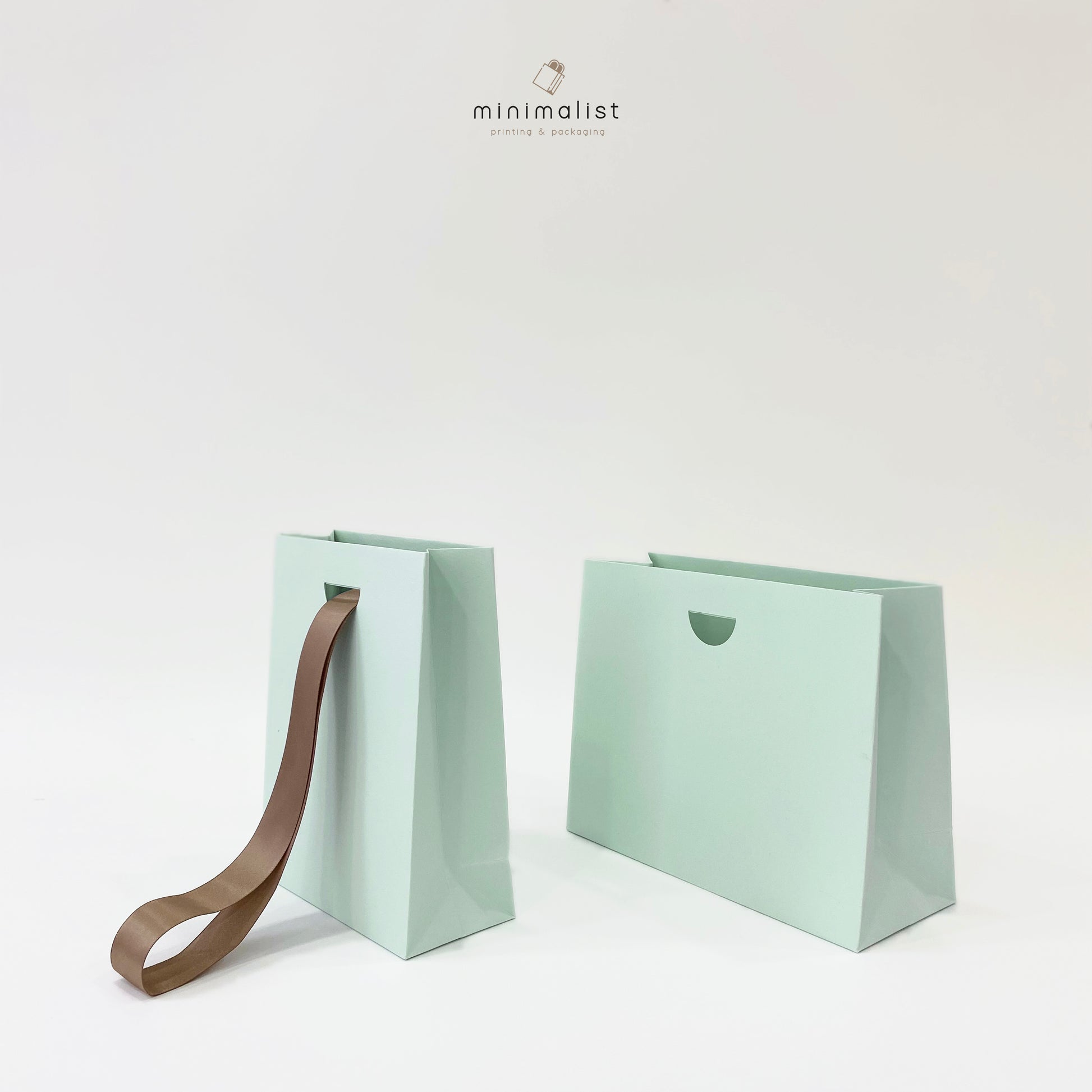 The Minimalist Paper Bag features a pre-punched handle hole, allowing you to carry it without a ribbon if preferred. You can customize the look by tying a bow or a tie knot with the included satin ribbon. Additionally, Minimalist offers a separate ribbon selection, giving you the freedom to mix & match to your unique style.