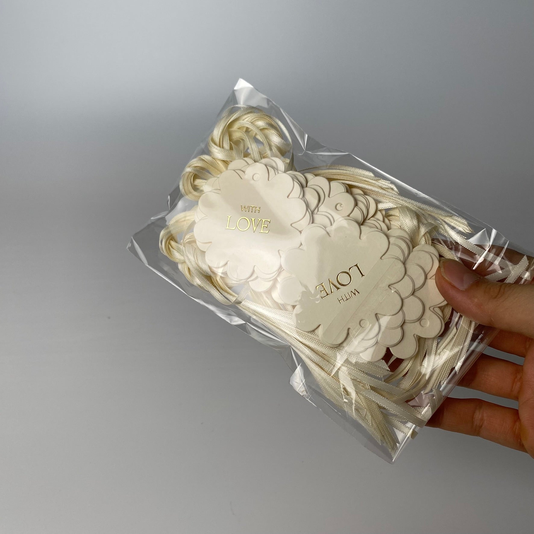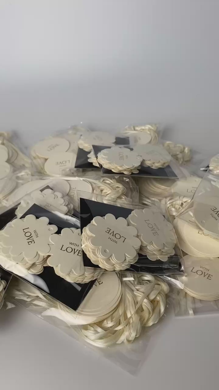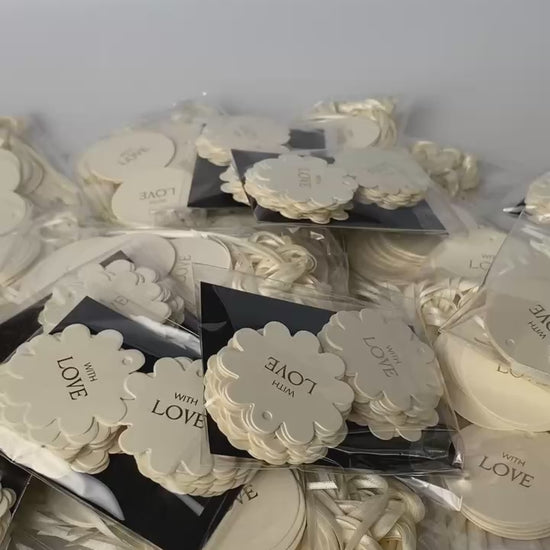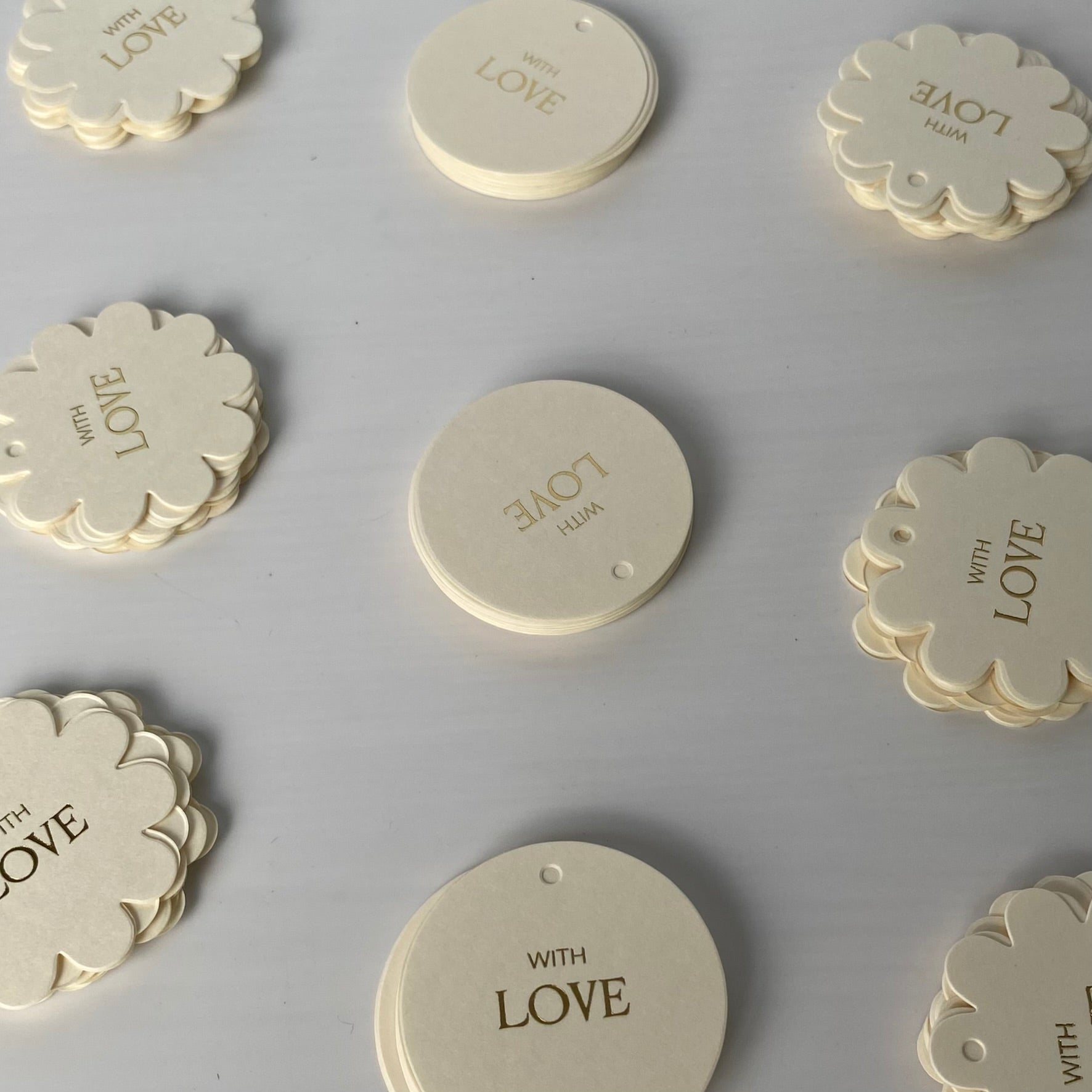 Hot Foil Stamping: The front of each tag features the phrase "WITH LOVE" in premium hot-foil – adding a classy and thoughtful touch.