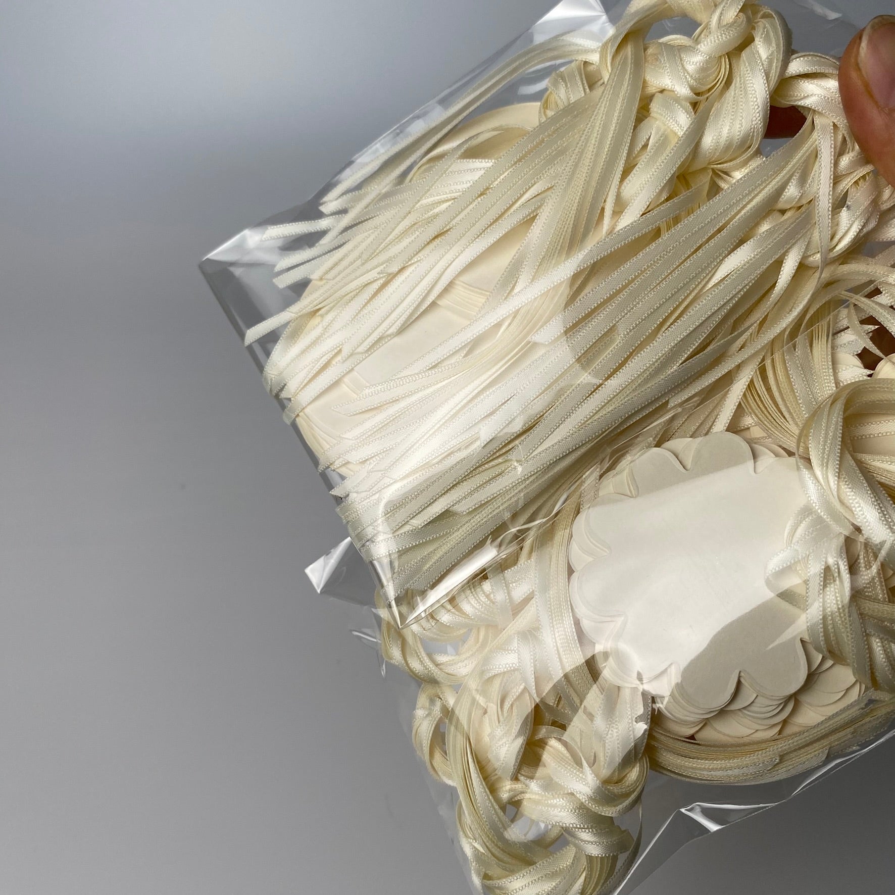 Included Ribbon: Each tag comes with a 40cm decorative satin ribbon (approx. 16 inches), long enough for tying a bow or sealing your gift bag.